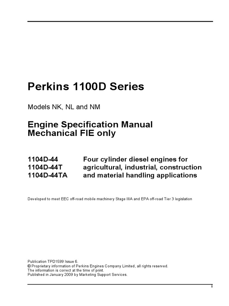 Perkins 1100d Series Engine Specification Manual Mechanical Fie Only Pdf Turbocharger Mechanical Engineering